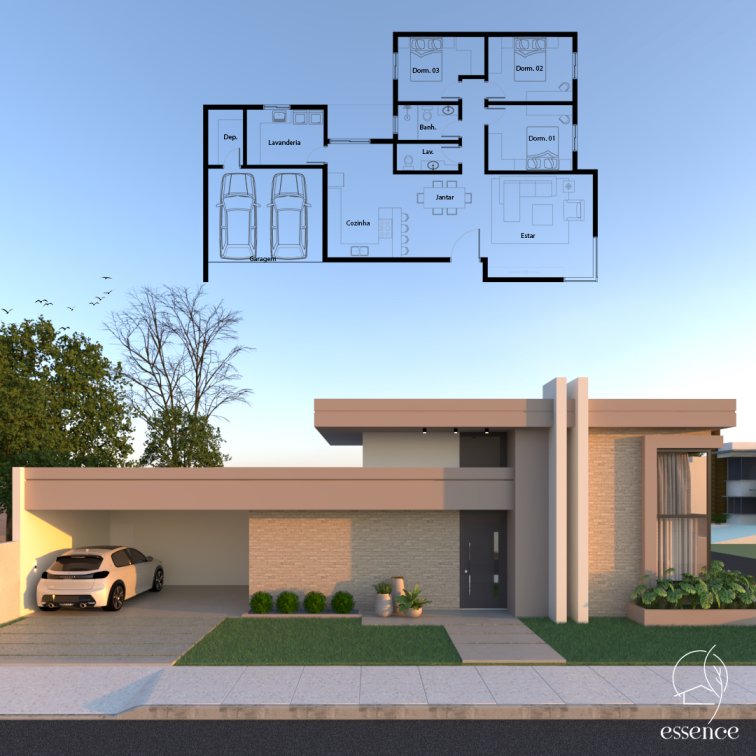 Residência Petúnia Casa térrea de 150m², moderna e funcional, ambientes amplos e interligados, facilitando o acesso e movimentação dos moradores.
