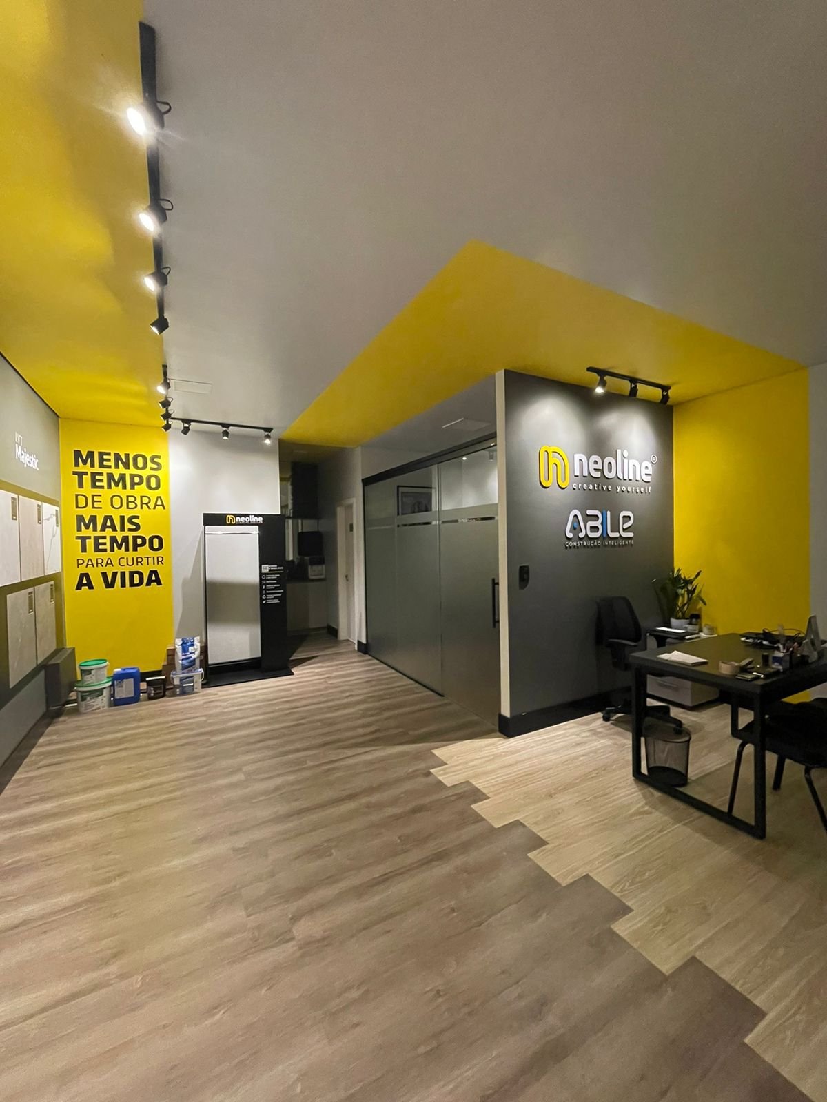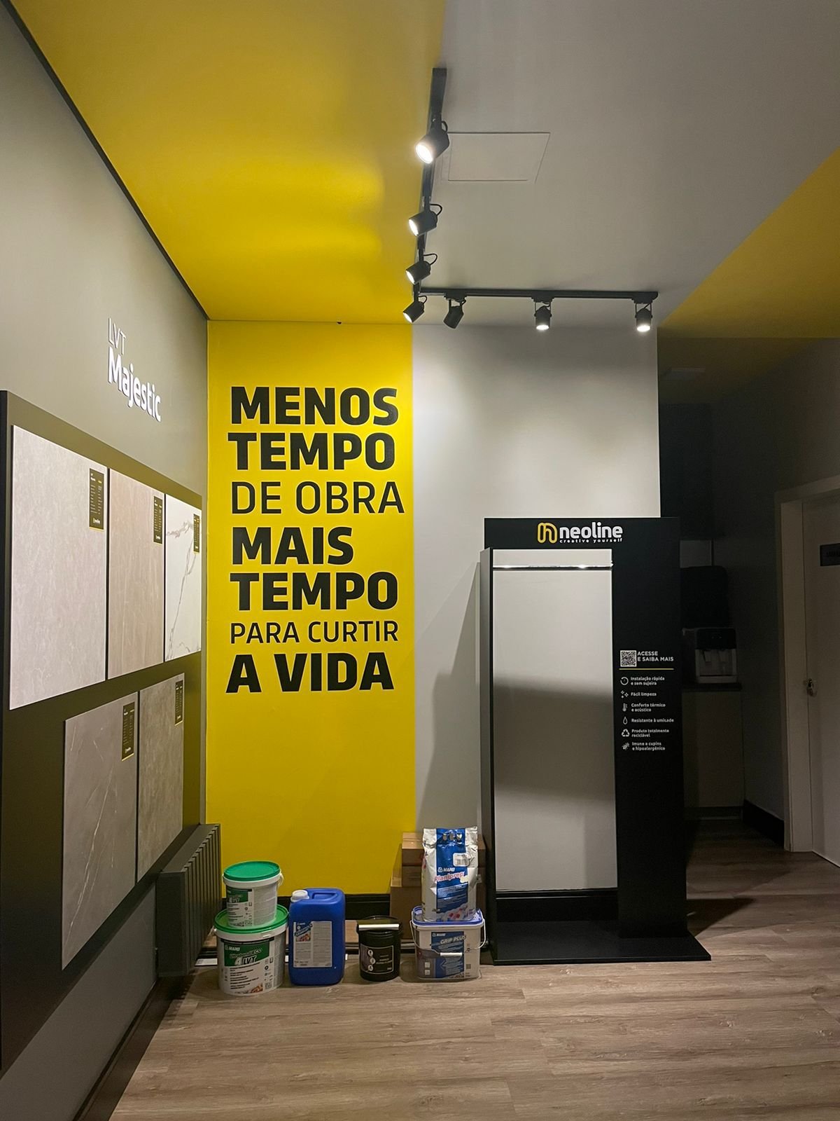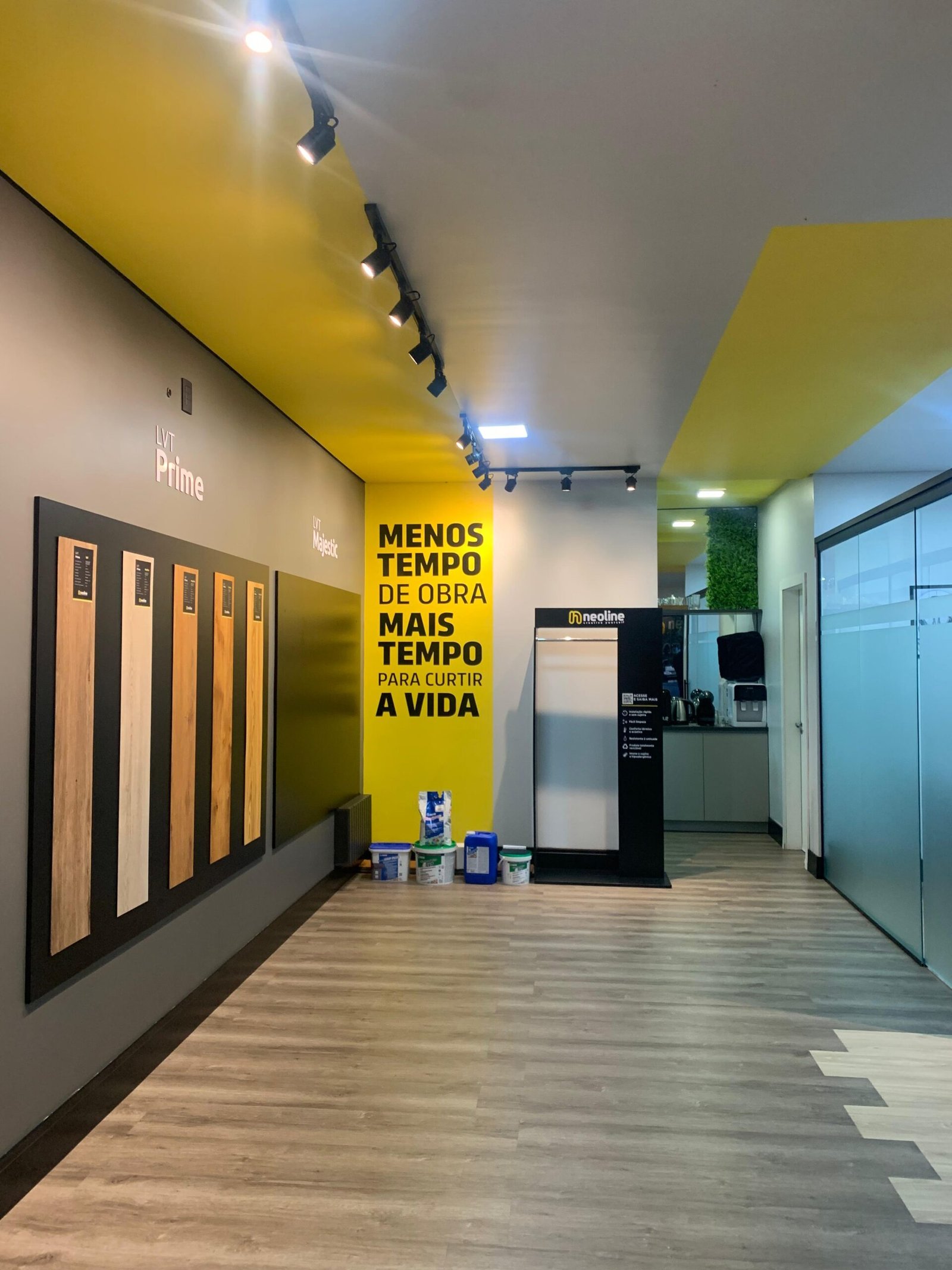 Sala Comercial Ponto comercial executado evidenciando características da marca e enfatizando a comercialização dos produtos ofertados. Foram utilizadas estratégias estéticas, na combinação de cores e também na paginação dos pisos.